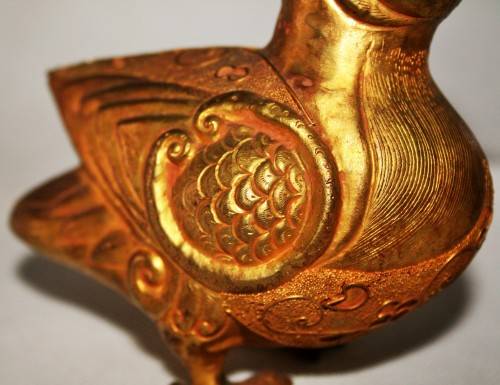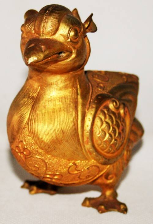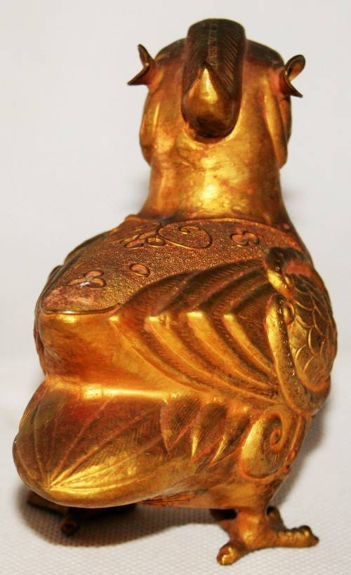 NOTE : UNUSUAL AND STILL IN GOOD CONDITION - FULL OF DETAIL !! THE BIRD HAS A SMALL HOLE AT THE BOTTOM AS WELL AS A HOLE ON EACH SIDE OF ITS BEAK - NOT SURE IF ITS SOME KIND OF INCENSE BURNER AS WELL