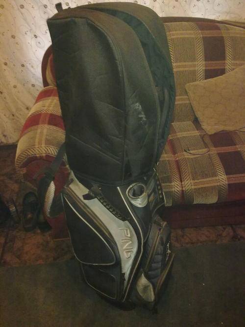 BAG IS IN EXCELENT CONDITION JUST A SINGLE ZIPPER BROKEN BUT CAN BE REPAIRED AT ANY GOLF SHOP.