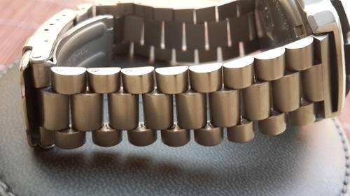 The dial has a minute scale on its outer-edge, numeral hour-markets and then a patterned inner circle. It certainly looks more modern than the original model, but seems needlessly complicated. Another change-for-the-sake-of-change was the switch to triangular hands for both the time and Chronograph hands