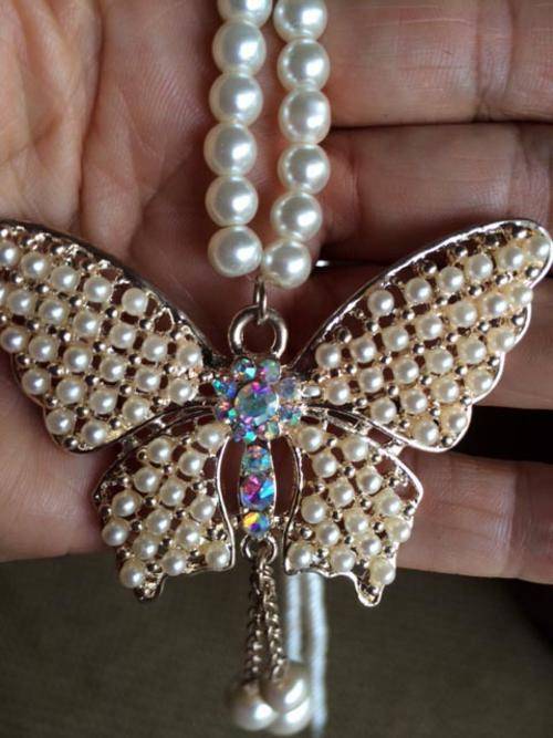 BUTTERFLY ADORNED WITH LITTLE PEARLS AND STONES
