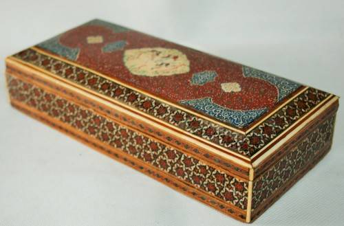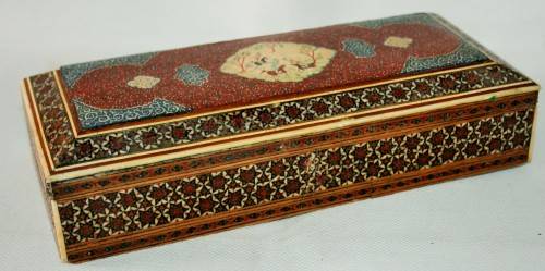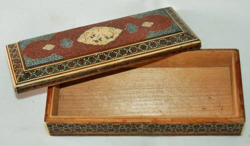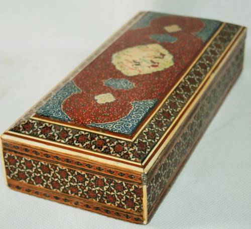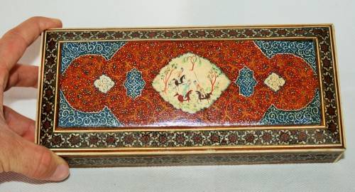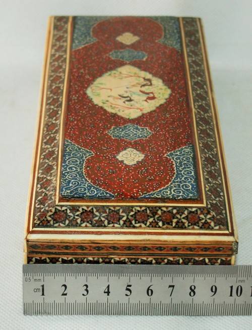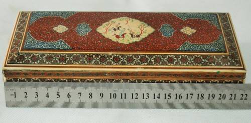 *PERSIAN*ANTIQUE HAND PAINTED BONE INLAY PERSIAN LACQUERED BOX !