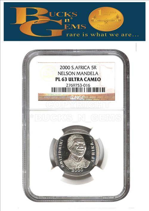 **PL63 U/CAMEO**--2000 MANDELA SMILE R5 COIN **PL63 ULTRA CAMEO**--NGC GRADED HIGH VALUE
