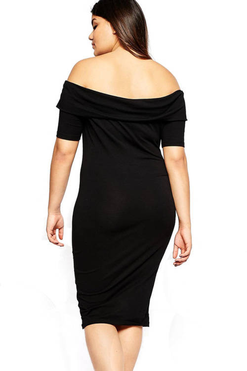 **PLUS SIZE** BEAUTIFUL BLACK OFF SHOULDER DESIGN MIDI DRESS