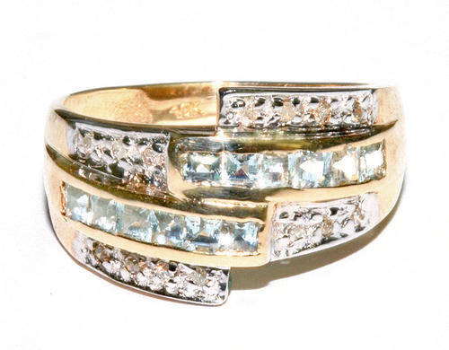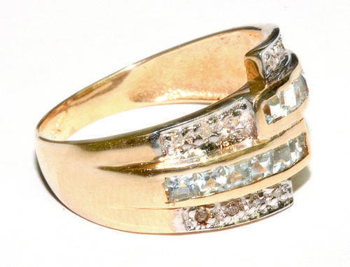 * PRICE REDUCED* CERTIFIED RING WITH 12 AQUAMARINES & 14 DIAMONDS IN 9KT YELLOW GOLD