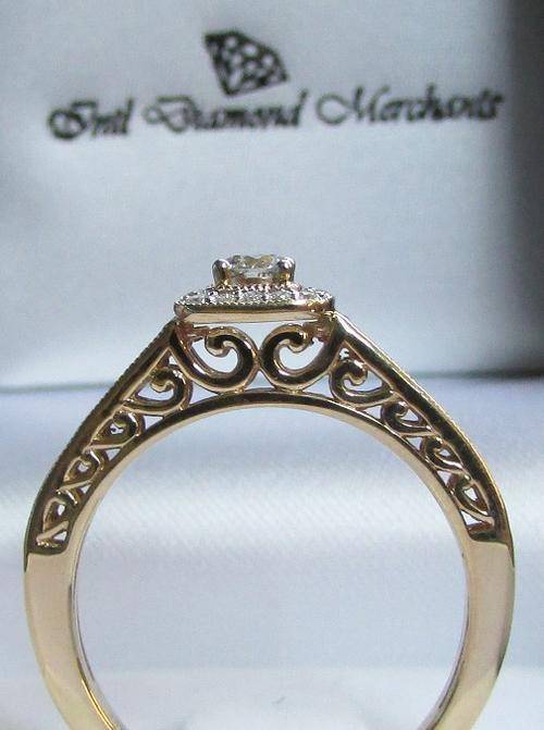 THE DIAMONDS REALLY SPARKLE, JUST LOOK AT THE DETAILED WORK ON THE RING BELOW !!! IT HAS A SPLIT SHANK DESIGN WITH IS SOUGHT AFTER. THE 2 ROWS SPLIT, EACH ROW CONTAINING ITS OWN SET OF DIAMONDS WITH A HALO AROUND THE CENTRE.
