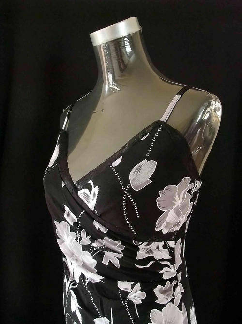 CHIFFON FLORAL LACE FRONT DRESS Size:34,100% Polyester, Length:120 cm(from bust to hem)