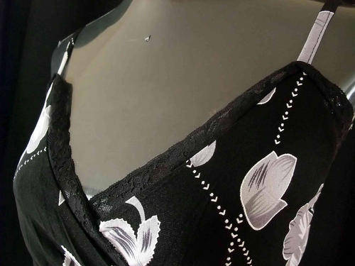 Black Background Light Grey Floral Pattern.Padded Bra.Black Inner
