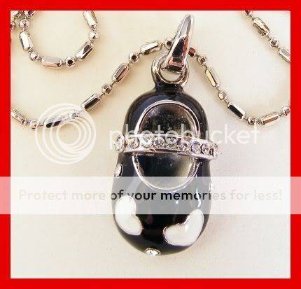 *R1* - 18K WHITE GOLD EP BLACK AND WHITE ENAMEL AND CRYSTAL SHOE PENDANT AND CHAIN
