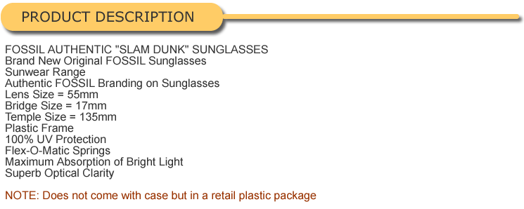 **R1,295.00** FOSSIL AUTHENTIC UNISEX "SLAM DUNK" SUNGLASSES - IMPORTED FROM EUROPE - BRAND NEW!
