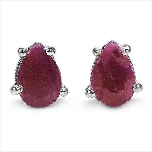 ***R1 520*** 0.90CTW Genuine Ruby Pears .925 Sterling Silver Stud Earrings