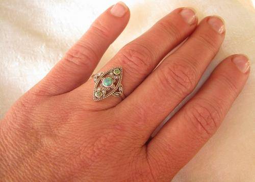***R1 980*** Green Fire Opal 925 Sterling Silver Filigree Ring Sz 6