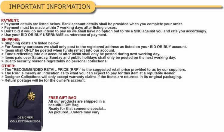 R35.00 Standard shipping using one of our trusted couriers applies to most areas in South Africa. Some areas may attract a R30.00 surcharge. This will be calculated at checkout if applicable. Check my rate