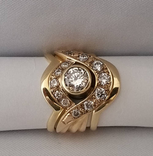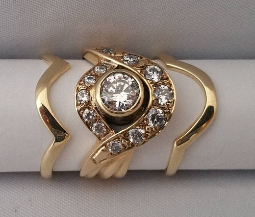 Made up of main engagement band and two wedding band custom made to fit around engagement band