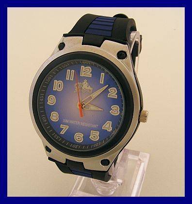 *R1* - BLACK & BLUE SILICONE STRAP WITH SILVER AND BLUE WATCH