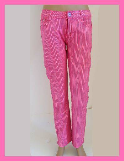 *R1* - PINK AND SILVER STRIPED STRETCH JEANS - 32