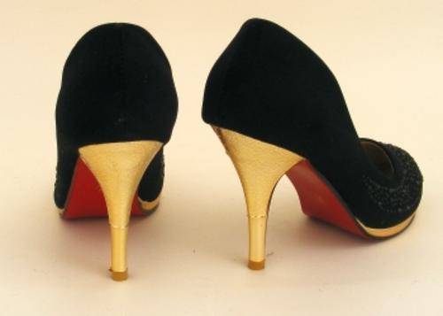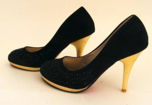 *R1* - SIZE: 5 - STUNNING BLACK STILETTOS WITH DIAMANTES AND GOLD HEELS