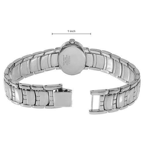 item Watch original brand name Pulsar condition brand new model peg519x1 movement quartz Watch Bracelet: material base metal color silver max length 7.0 inch Watch Case: height 6 mm total item length 27 mm material base metal color silver width 23 mm gemstone info: gemstone crystal quantity 4 shape square color white other info: gender ladies