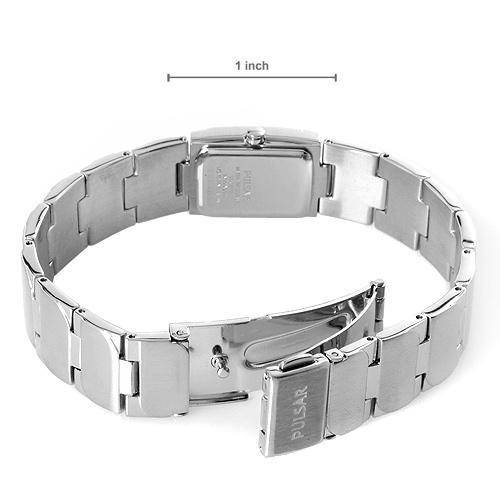 item Watch original brand name Pulsar condition brand new model peg965 movement quartz Watch Bracelet: material stainless steel color silver max length 7.0 inch Watch Case: height 6 mm total item length 21 mm material stainless steel color silver width 16 mm other info: gender ladies