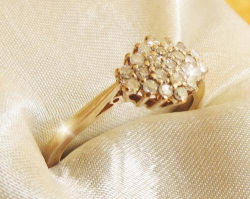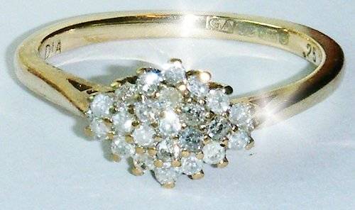 ***R14 600*** UK HALLMARKED 9CT YELLOW GOLD .25 CARAT DIAMOND CLUSTER RING SIZE L