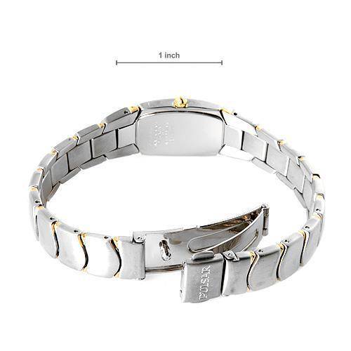 item Watch original brand name Pulsar condition brand new model peg573 movement quartz Watch Bracelet: material stainless steel color two tone max length 7.0 inch Watch Case: height 8 mm total item length 31 mm material stainless steel color silver width 18 mm other info: gender ladies