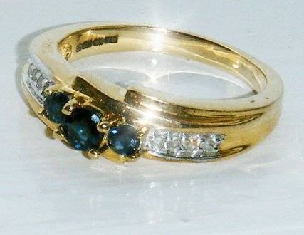***R15 600***UK HALLMARKED 9CT YELLOW GOLD SAPPHIRE & DIAMOND RING SIZE L