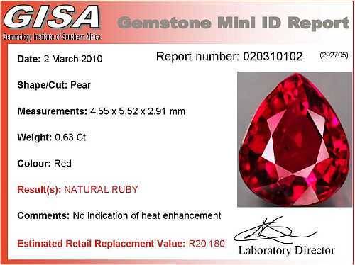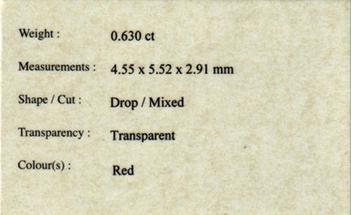 | Treatment | UNHEATED Origin :Burma, Mogok |