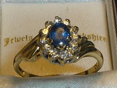 ***R22 000*** 9CT GOLD REAL SAPPHIRE & .25CT DIAMOND CLUSTER RING - O