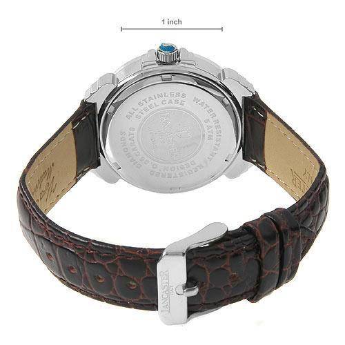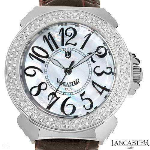 item Watch original brand name Lancaster condition brand new made in ITALY model ola226lp movement quartz total diamond carat weight 0.86ctw Dial: material mother of pearl color play of color quantity 1 shape round Watch Bracelet: material leather color brown max length 8.25 inch min length 6.5 inch Watch Case: diameter 36 mm height 10 mm material stainless steel color silver water resistant 5 atm gemstone info: gemstone diamond quantity/ctw 112/0.86ctw shape round color I - J clarity I2 other info: gender ladies