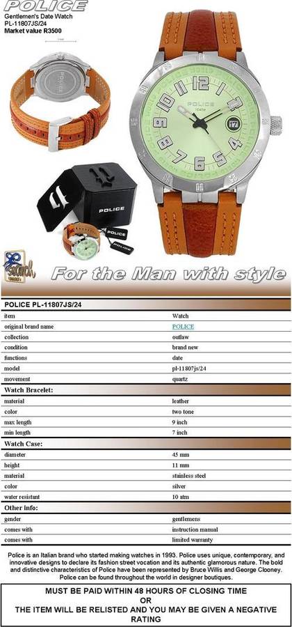 **R3 500.00** POLICE PL-11807JS/24 Brand New Gentlemens Date Watch [M7]