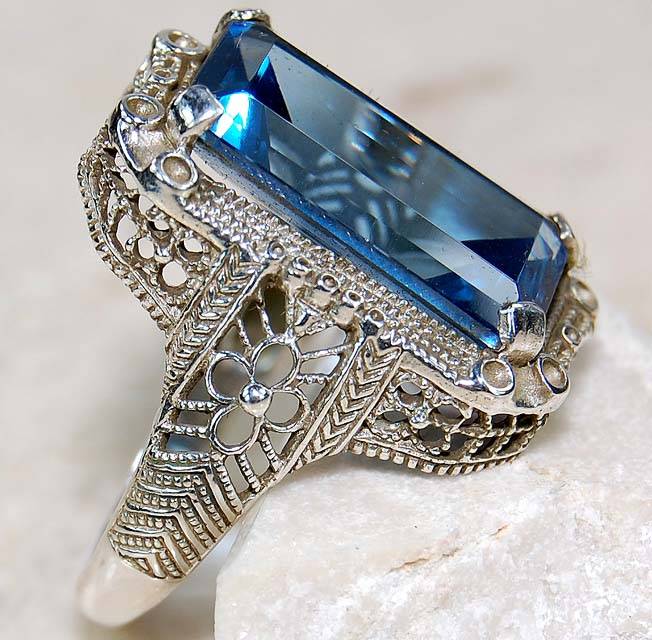***R3 770*** 10ct Blue Topaz 925 Silver Filigree Ring Sz 5.75