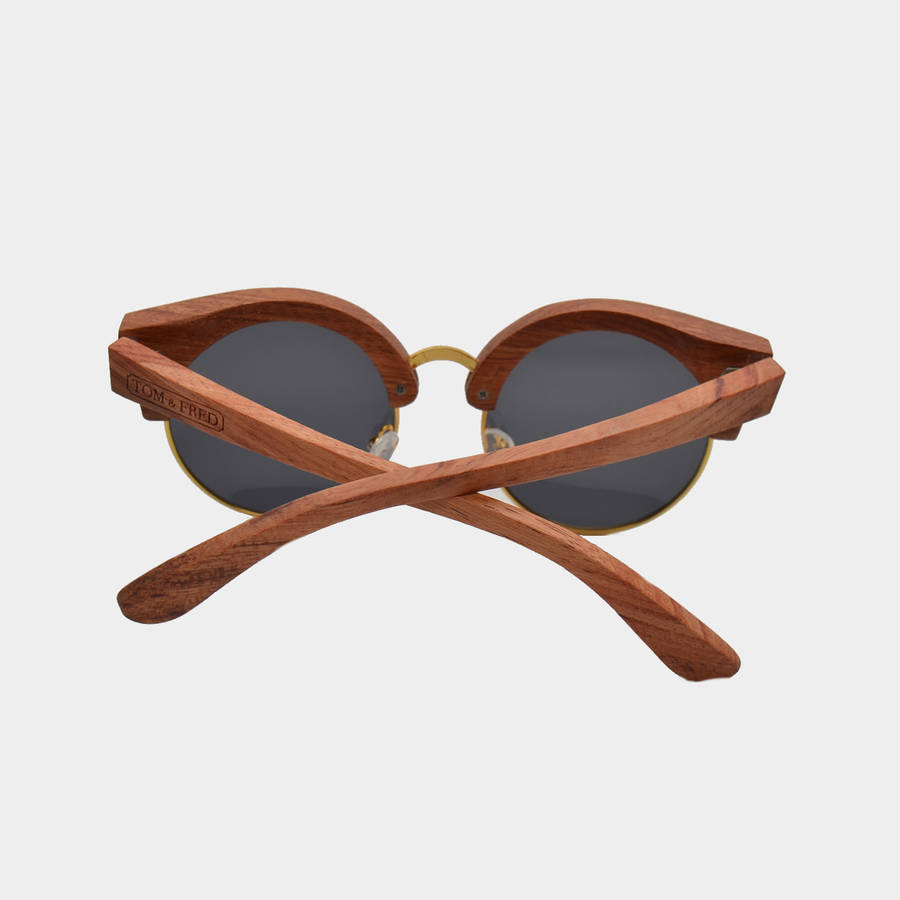 Vintage casual and elegant design, the Goose features a super lightweight, round shaped metal frame, hand finished by master craftsmen in ebony or walnut woods. Featuring adjustable nose pads, spring hinges and dark grey lenses offering full UVA/UVB protection. Tom & Fred insignia is engraved at the temple. The Goose comes packed inside a wooden cylindrical carry case.