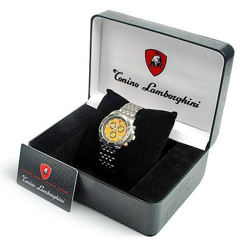 item Watch original brand name Tonino Lamborghini condition brand new functions date model en021.103 movement swiss movement Watch Bracelet: material stainless steel color silver max length 8.0 inch Watch Case: diameter 42 mm height 11 mm material stainless steel color silver water resistant 100 m other info: style chronograph gender gentlemens comes with instruction manual