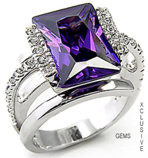 * R35 POSTAGE* 18K WHITE GOLD PLATED SIMULATED AMETHYST LADIES RING