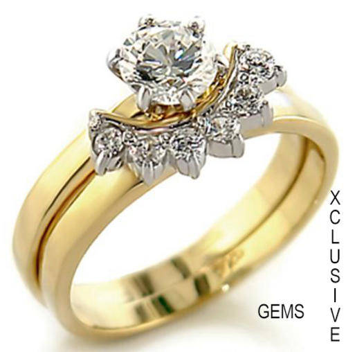 * R35 POSTAGE* 18K YELLOW GOLD PLATED SIMULATED DIAMOND WEDDING RING SET