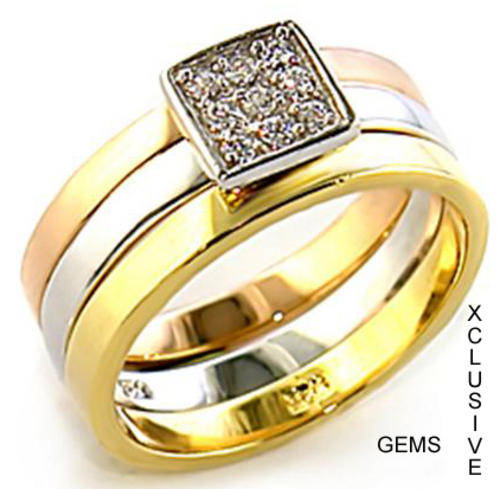 * R35 POSTAGE* 18K YELLOW GOLD PLATED SIMULATED DIAMOND WEDDING RING SET