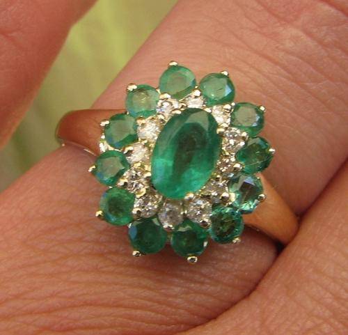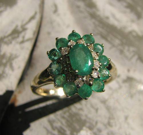 ***R38 000*** SUPERB 9CT GOLD EMERALD & DIAMOND CLUSTER RING 6.5