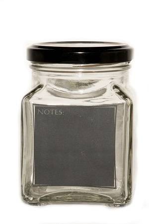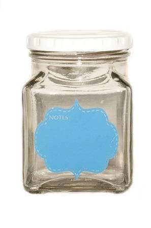*R39*SMALL GLASS JAR WITH COLOUR NOTES