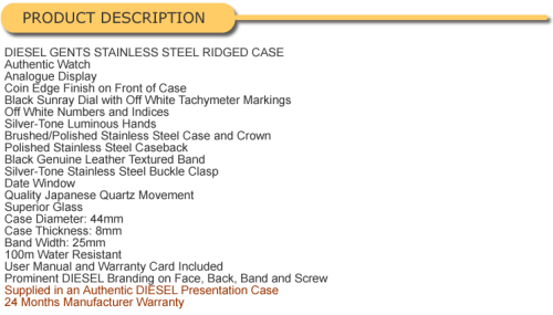 **R4,199.00** DIESEL GENTS STAINLESS STEEL RIDGED CASE **BRAND NEW WITH FULL WARRANTY!!!**