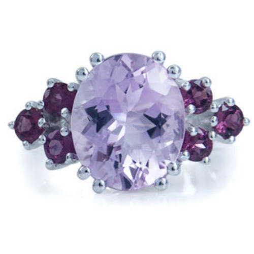 Accent stone type: 6 pieces of 0.84 ct. round shape genuine rhodolite garnet.