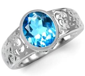 [R6984.20] 3.18ct Genuine Swiss Blue and White Topaz Designer Ring. Size 10 / U