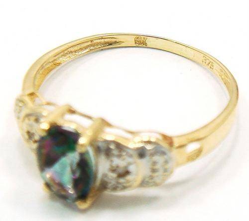 ***R7500***ICE HOT***EXOTIC 9KT YELLOW GOLD OVAL MYSTIC TOPAZ & DIAMOND RING SIZE 7
