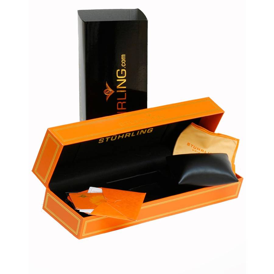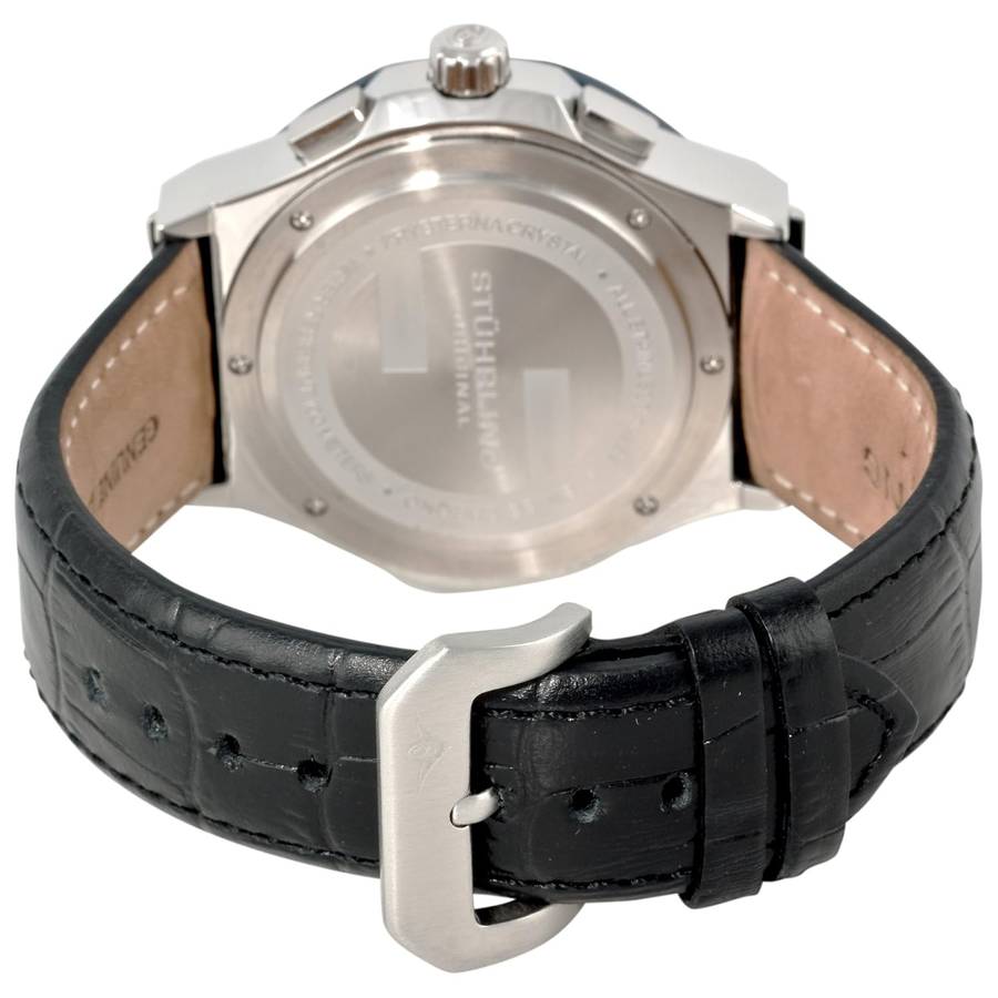 Brand Name: Stuhrling Original Model number: 160F2.332B52 Part Number: 160F2.332B52 Item Shape: round Dial window material type: synthetic-sapphire Display Type: analog Clasp: Buckle Case material: stainless-steel Case diameter: 45 millimeters Case Thickness: 14.5 millimeters Band material: calfskin Band length: mens-standard Band width: 24 millimeters Band Color: black Dial color: silver Bezel material: stainless-steel Bezel Function: stationary Calendar: day-and-date Movement: swiss-quartz Water resistant depth: 330 Feet