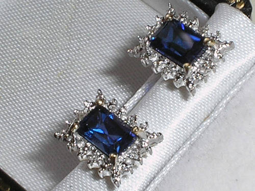 ***R8900***9ct royal blue london blue topaz & diamond earrings!