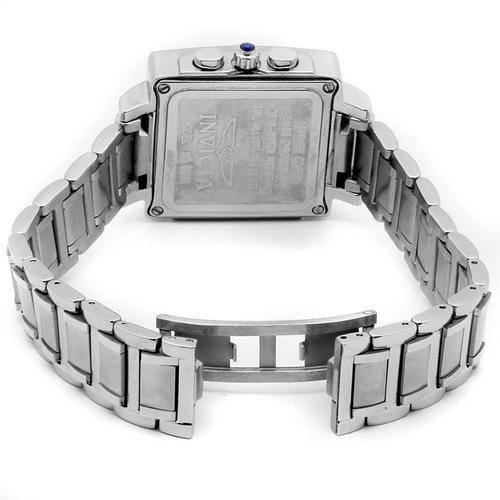 Glistening with exquisite silver accents, the Invicta Women's Square Angel Diamond Stainless Steel Chronograph Watch #5377 catches the eye starting with its ornate diamond-encrusted stainless steel bezel. Protected by a fine mineral crystal, the square silver-tone dial is contrasted with crisp white stick hourly markers and matching hour and minute hands, while an easy-to-read date window is perched at four o'clock. The spherically-bordered inner dial is embellished with three chronograph subdials with black markers and sweeping hands. The dazzling silver-tone bezel, held by a matching stainless steel case, features a crown set with an eye-catching blue jewel. Silver tones continue to the sleek stainless steel linking bands that easily fasten with a deployment clasp. Water resistant to 330 feet (100 M), the Angel Diamond also boasts the reliability of Swiss-quartz movement.