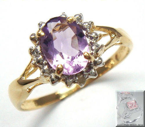 ***R9999***FABULOUS 10KT YELLOW GOLD OVAL AMETHYST & DIAMOND RING SIZE 7