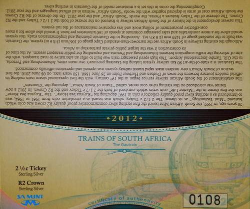 *** BRAND NEW 2012 GAUTRAIN SILVER CROWN & TICKEY PROOF SET***