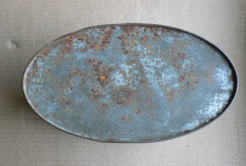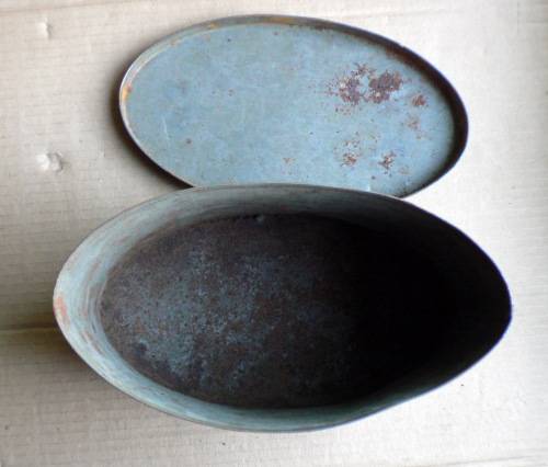 The Tin are rusted on the bottom outside and are also rusted on the inside. No holes