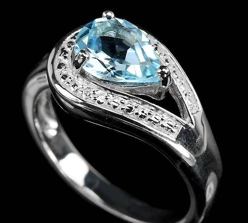 ***REAL STONES!!!*** SKY BLUE TOPAZ OVAL FACET CUT 9X7 MM. STERLING 925 SILVER RING 9.25