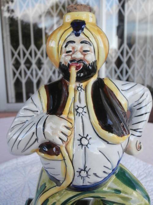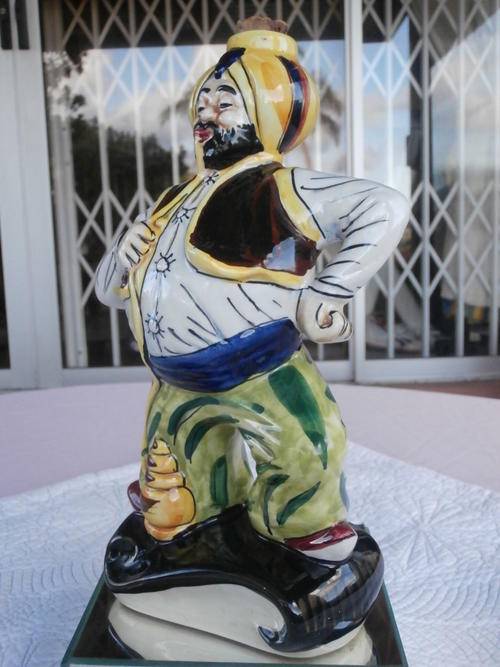 *REDUCED* A MOST UNUSUAL ALI BABA ITALIAN DECANTER +/- 20CM HIGH STUNNING COLOURS AND VERY DIFFERENT