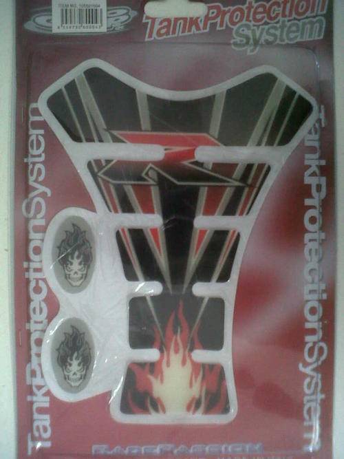 Protect your pride and joy from those un nerving belt scratches with this self adhesive Tank Protector. It is a slicone gel base plastic With a Flame design and a Type-R logo. Stylish and universal to fit virtually all Crotch Rockets. Made in Italy...